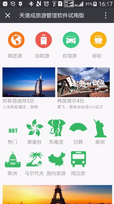 之前天港成推出了跟團游的一個簡約版的手機微網(wǎng)站模版101,隨著天港成旅游軟件2015版20160628批次,天港成發(fā)布“豪華版”的手機微店模板102。用102模板,您可以自己構建一個媲美市面各種流行APP的手機微店樣式。