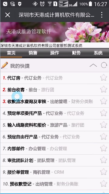 天港成旅游軟件手機(jī)版是天港成軟件在移動(dòng)互聯(lián)時(shí)代的創(chuàng)新產(chǎn)品,它將天港成旅游軟件功能延伸到手機(jī)端,讓旅行社管理人員在智能手機(jī)上就可以輕松地利用天港成旅游軟件管理公司的業(yè)務(wù)。