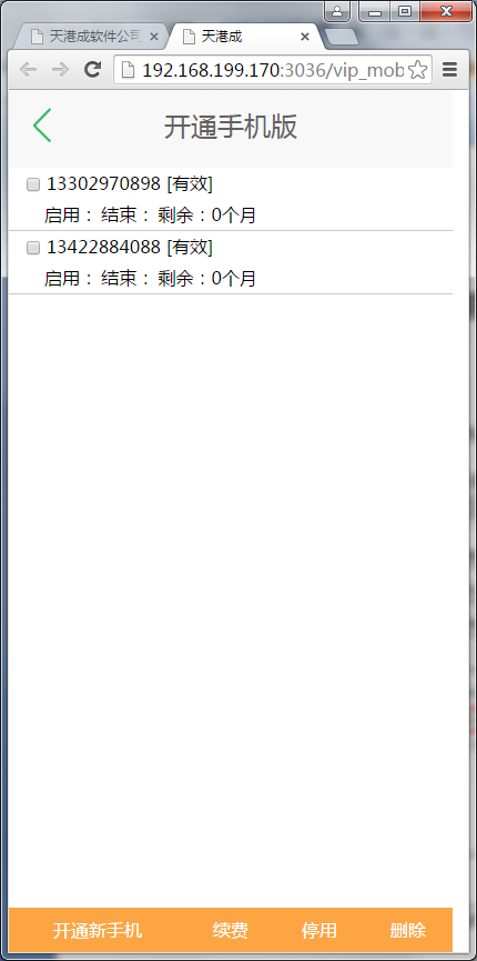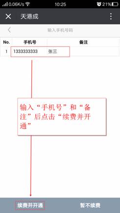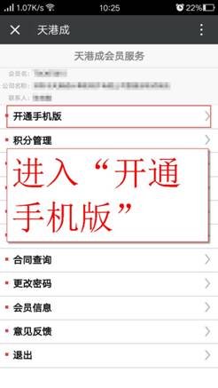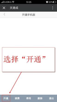 2. 進(jìn)入“天港成”微信服務(wù)號(hào),開通手機(jī)版的操作員手機(jī)號(hào)。