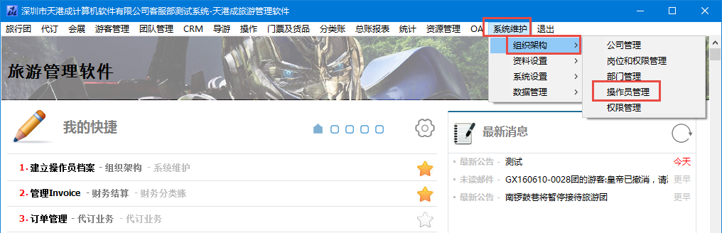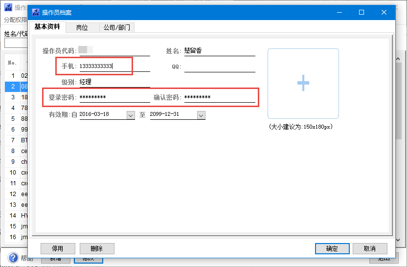 4. 天港成旅游管理軟件中操作員管理中設(shè)置操作員手機(jī)號(hào)碼與已開通的手機(jī)版操作員手機(jī)對(duì)應(yīng)。(登錄手機(jī)版操作相當(dāng)于以該操作員登錄軟件版操作)