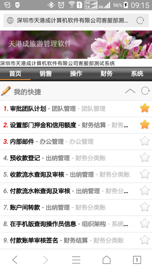 我的快捷的含義和用法和軟件版和網(wǎng)頁版是相似的,將操作員使用頻率最多的功能按點擊點擊次數(shù)從大到小排列在首頁。需要注意的是,在手機(jī)版上只會列出手機(jī)版可以使用的功能項目菜單。