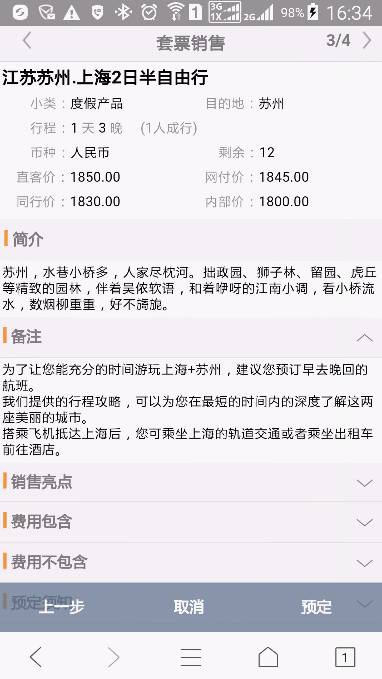 手機(jī)版會列出當(dāng)日有報價的套票產(chǎn)品,選擇一個要預(yù)訂的產(chǎn)品,點(diǎn)擊 >