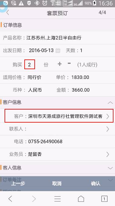 輸入購買的套票份數(shù),選擇一個訂單所屬的客戶。