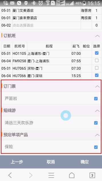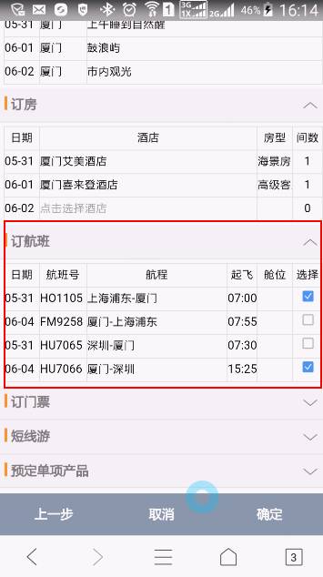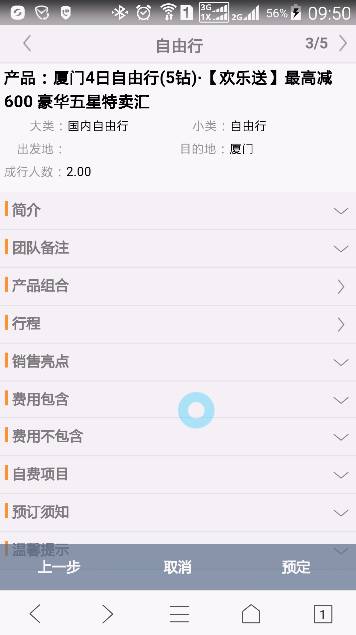 點(diǎn)擊【預(yù)定】按鈕,進(jìn)行自由行產(chǎn)品預(yù)定: