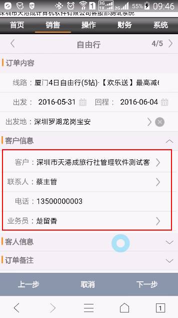 完成訂單的基本信息輸入后,點(diǎn)擊【下一步】