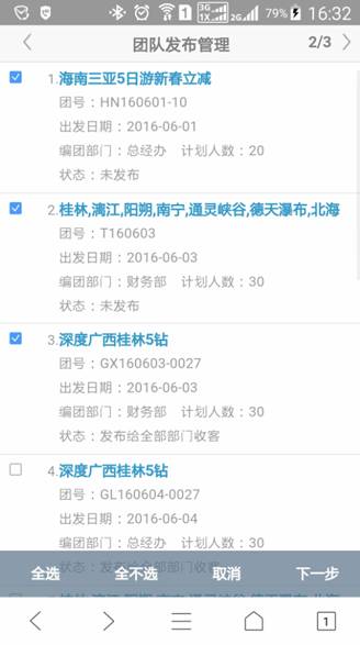 選中要發(fā)布的一個(gè)或多個(gè)團(tuán),點(diǎn)擊【下一步】