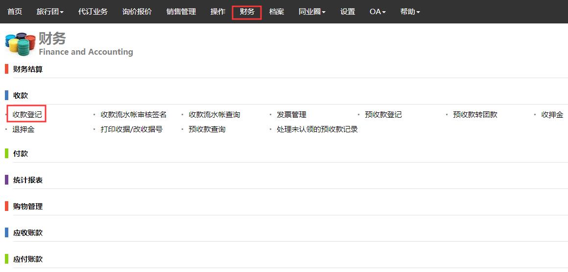 收款登記方式四合一,方便操作員多個(gè)客戶多個(gè)團(tuán)隊(duì)一起收款登記!