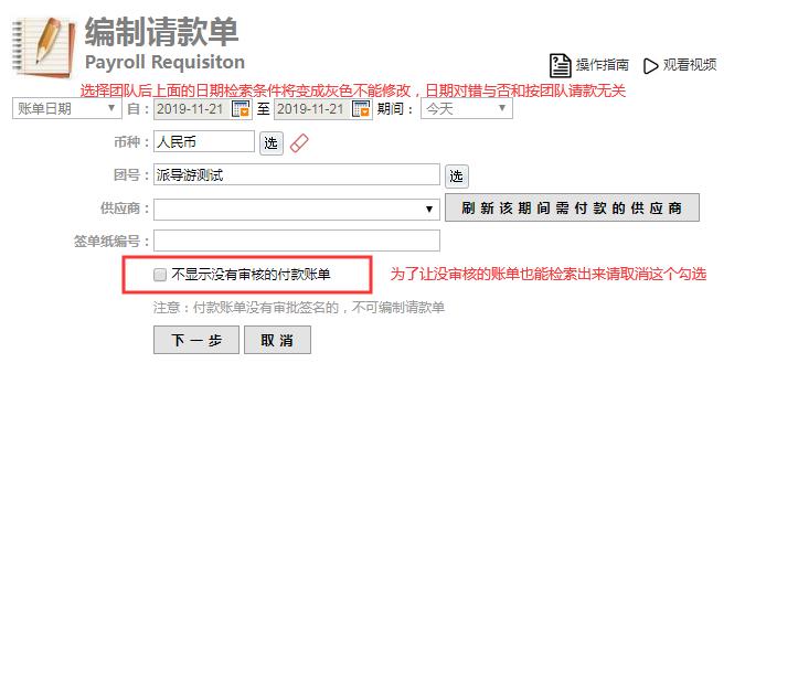 (3)取消勾選“不顯示沒(méi)有審核的付款賬單”,點(diǎn)擊【下一步】。