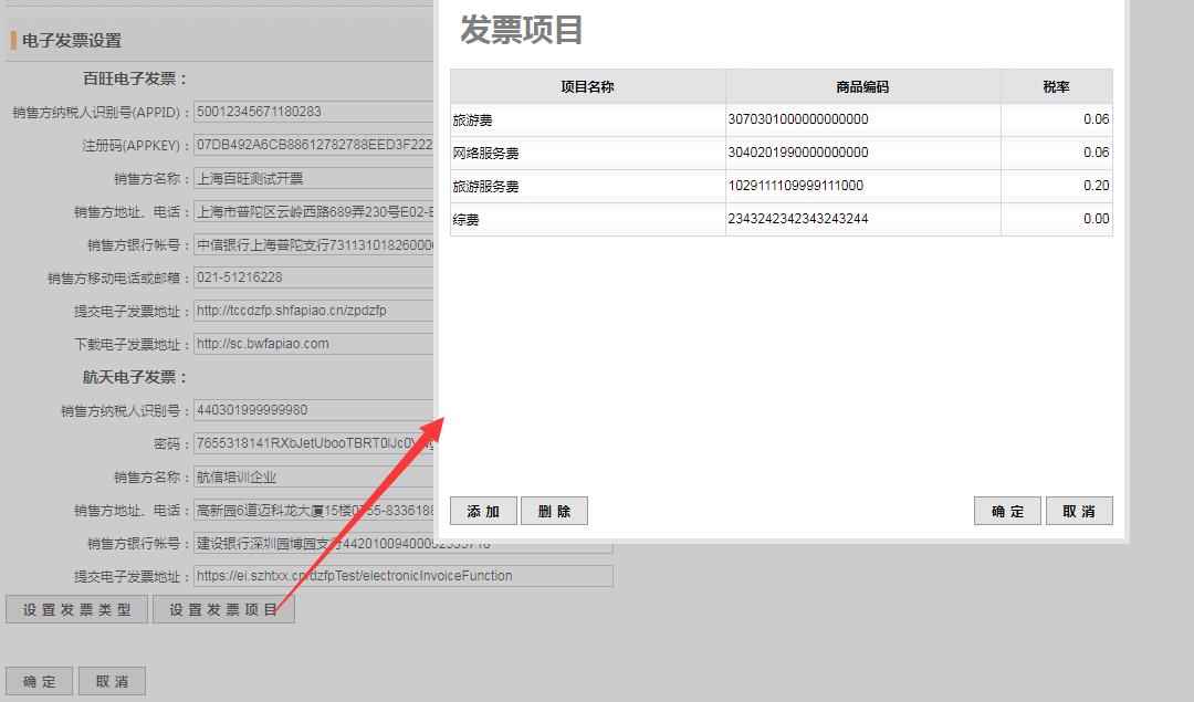 2.設(shè)置發(fā)票類型和設(shè)置發(fā)票項(xiàng)目,點(diǎn)擊【添加】根據(jù)情況輸入即可。