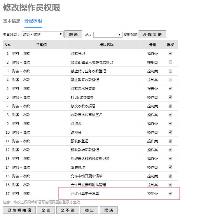 進(jìn)入路徑:設(shè)置-組織架構(gòu)-操作員管理-修改-分配權(quán)限-勾選“允許開具電子發(fā)票”