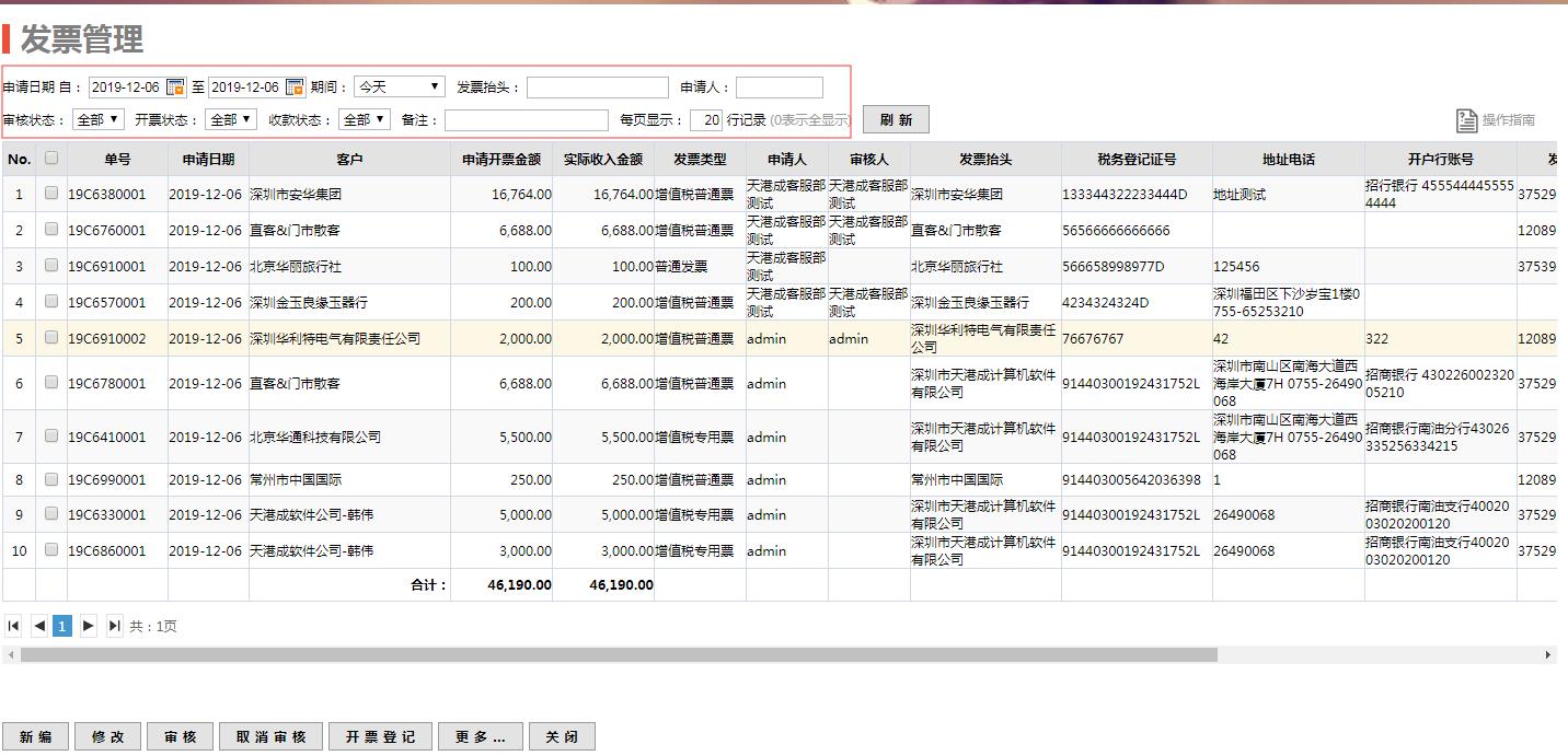 進(jìn)入路徑:財(cái)務(wù)-收款-發(fā)票管理